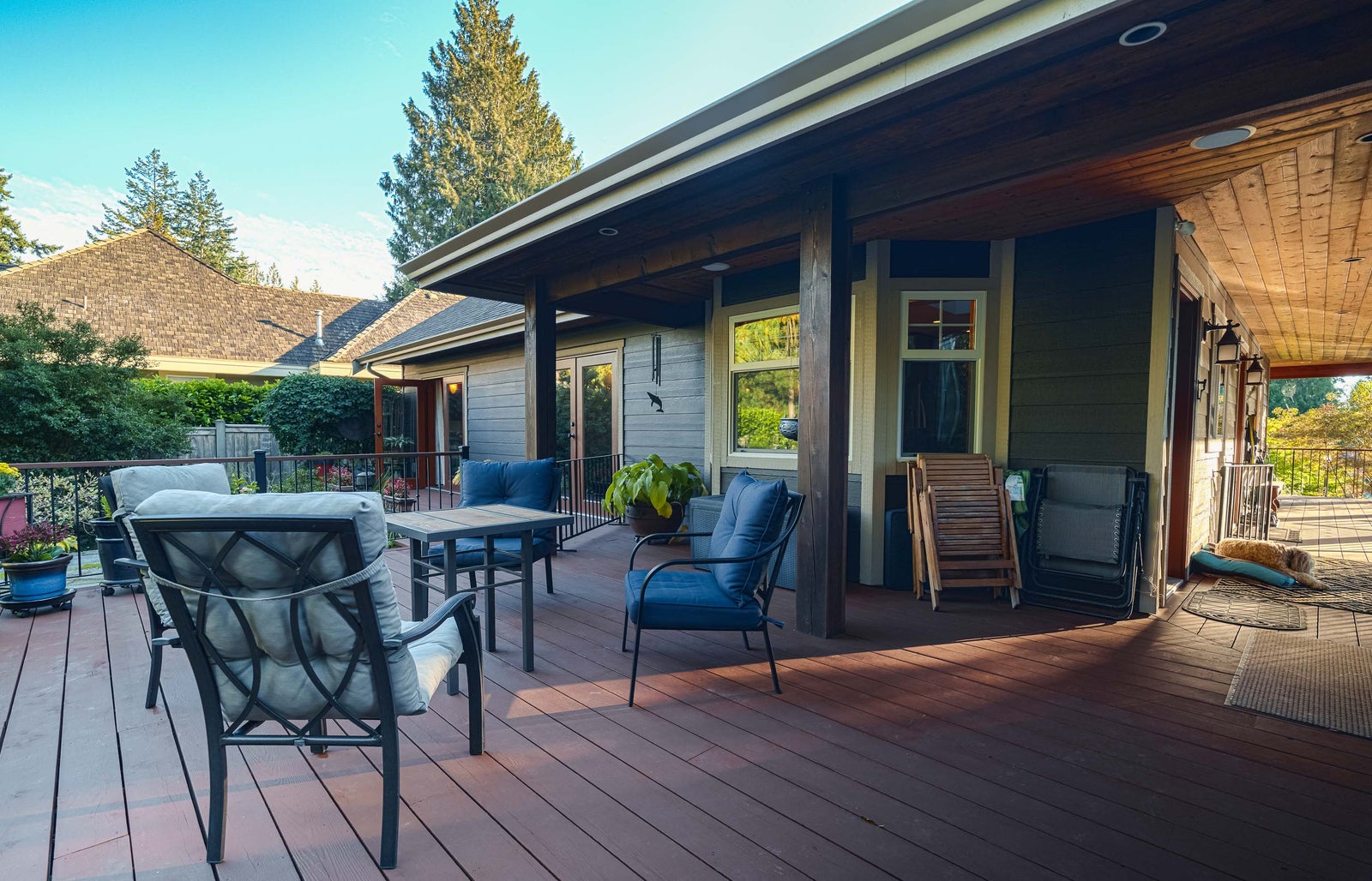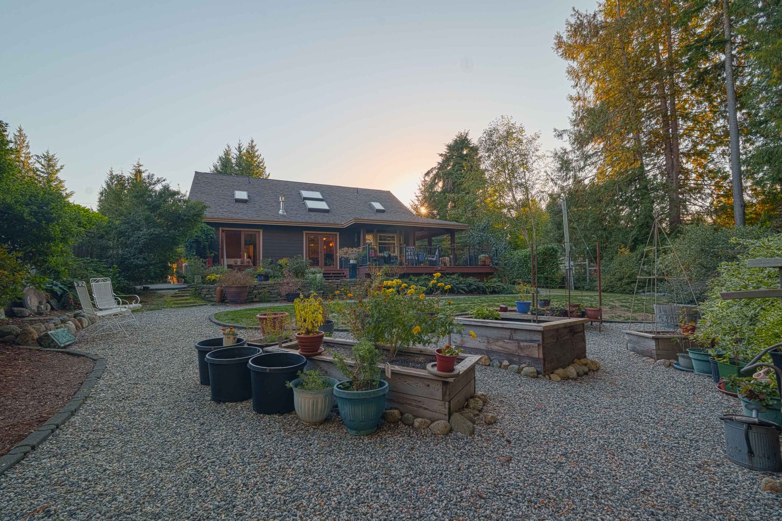Custom-built 3 bed, 3 bath home on a beautifully landscaped ½-acre in the heart of family-friendly Welcome Woods. Designed with exceptional craftsmanship and comfort in mind, featuring Brazilian cherry hardwood floors, rich fir trim, vaulted ceilings with custom ironwork, heated tile, and Merit wood cabinetry. The chef’s kitchen offers double wall ovens, a 5-burner gas cooktop, and solid wood cabinets. Cozy Valor gas fireplace, heat pump, on-demand hot water, central vac, and 200-amp service with backup panel. Enjoy seamless indoor-outdoor living on the 750 sq ft wrap-around covered deck surrounded by gardens, stone hardscapes, and fruit trees. Detached 768sqft, 3-bay garage / workshop with 2 piece bath, 10 ft ceilings, 200-amp service, and a 700sqft self-contained suite with maple flooring, open concept post & beam & 2 skylights.