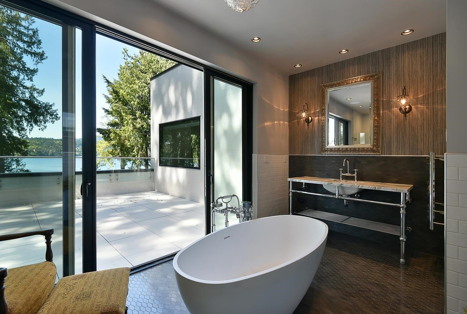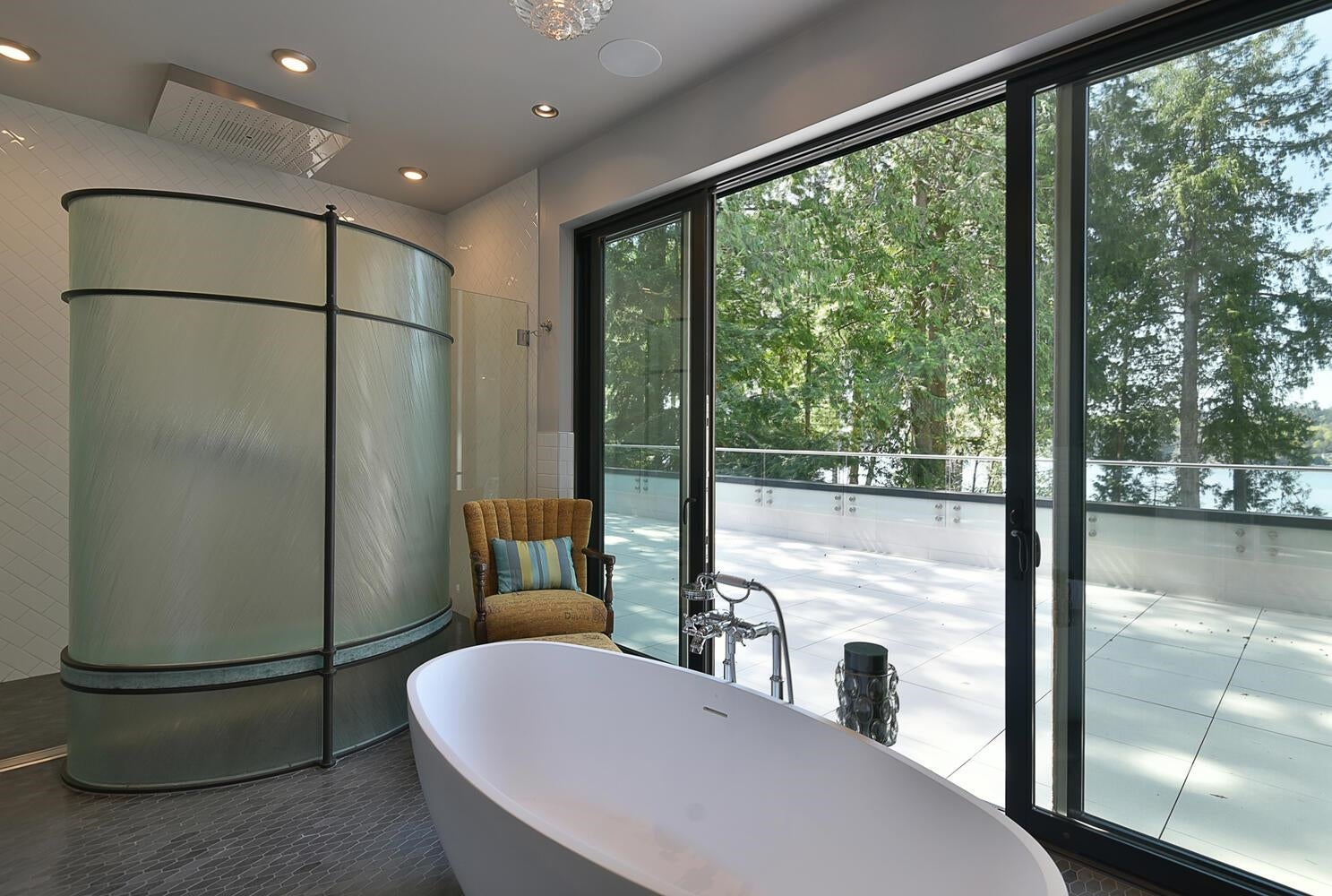 Where fine architecture meets sheer elegance. This contemporary masterpiece sits on 2.9 acres of pristine Westcoast shoreline, offering 5,100sqft of refined living. Floor to ceiling tile columns, 100 year old reclaimed fir floors, beautiful ultra high end windows and doors create the perfect balance of light and warmth. The chef's kitchen features a commercial "live" stove, prep kitchen and wine room. The 27ft ceiling anchors the grand living area, opening to ocean view terraces and infinity pool and curved glass walls. Two ocean view primary suites boast 15 ft high ceilings and hand crafted glass showers. A media room and exquisite craftsmanship complete this private estate.