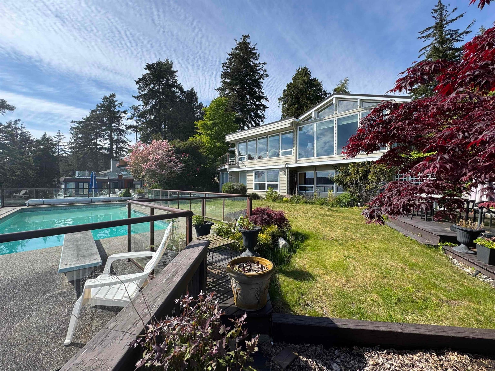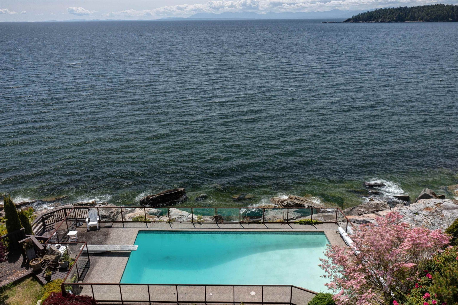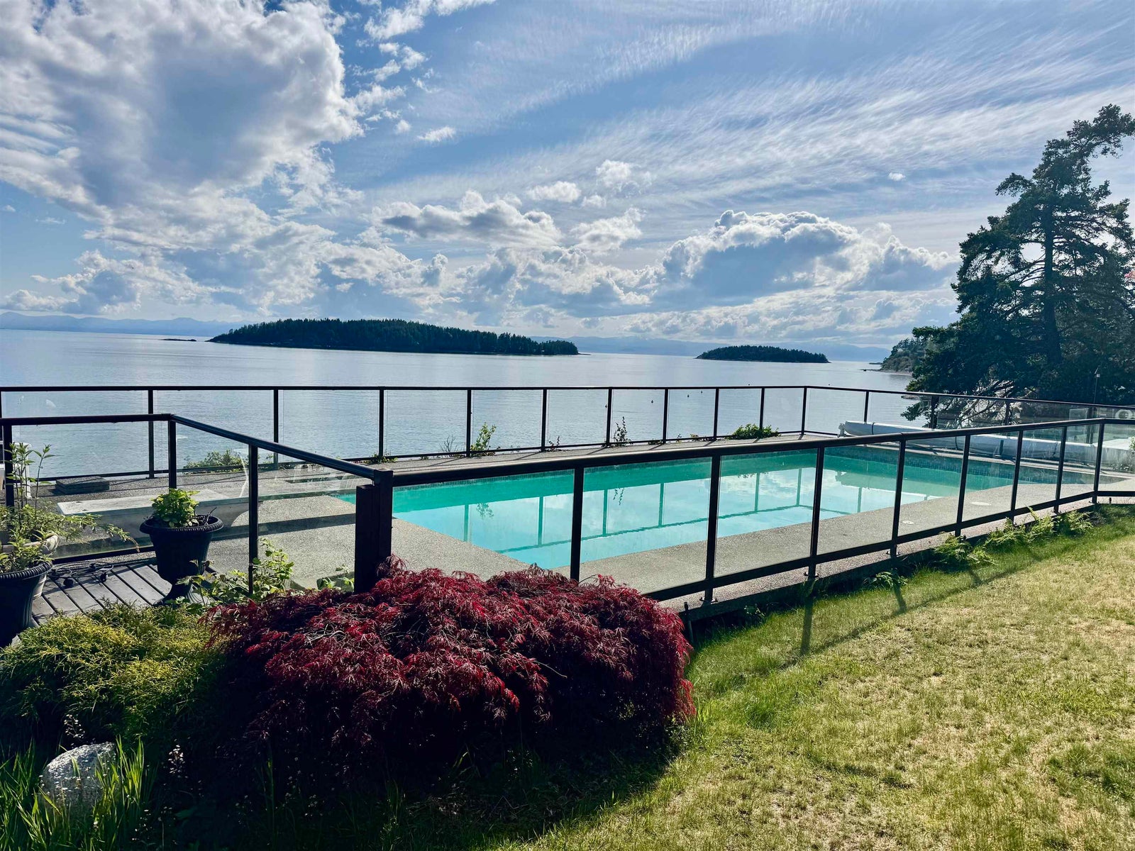 Rare level entry waterfront property within walking distance to the shops & services of Sechelt. 4200 sq ft custom built bungalow with incredible views of the Ocean & Trail Islands. Tastefully renovated including new metal roof this beautiful executive home enjoys a number of patios/decks, concrete seaside pool, smooth rock outcroppings with easy access to the water. Spacious main level with a large open floor plan that is perfect for entertaining. Renovated kitchen w/ large dining & living room that take full advantage of the South & West open water views. Over 1900 sq ft fully developed lower level walkout includes a full kitchen for family & visiting guests w/ easy access for poolside entertaining. Beautiful landscaped grounds complete this wonderful offering. A lovely home & property.