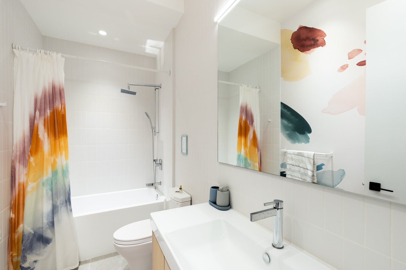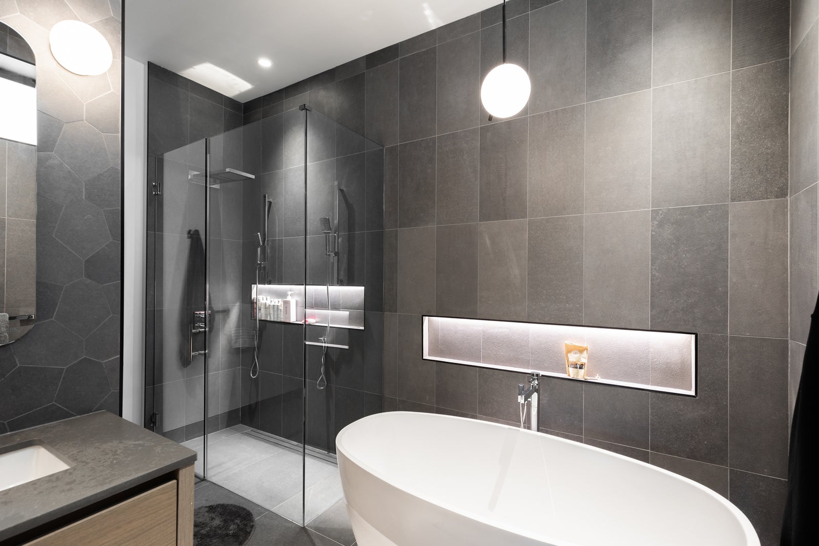 Dual rain-head shower with LED niche