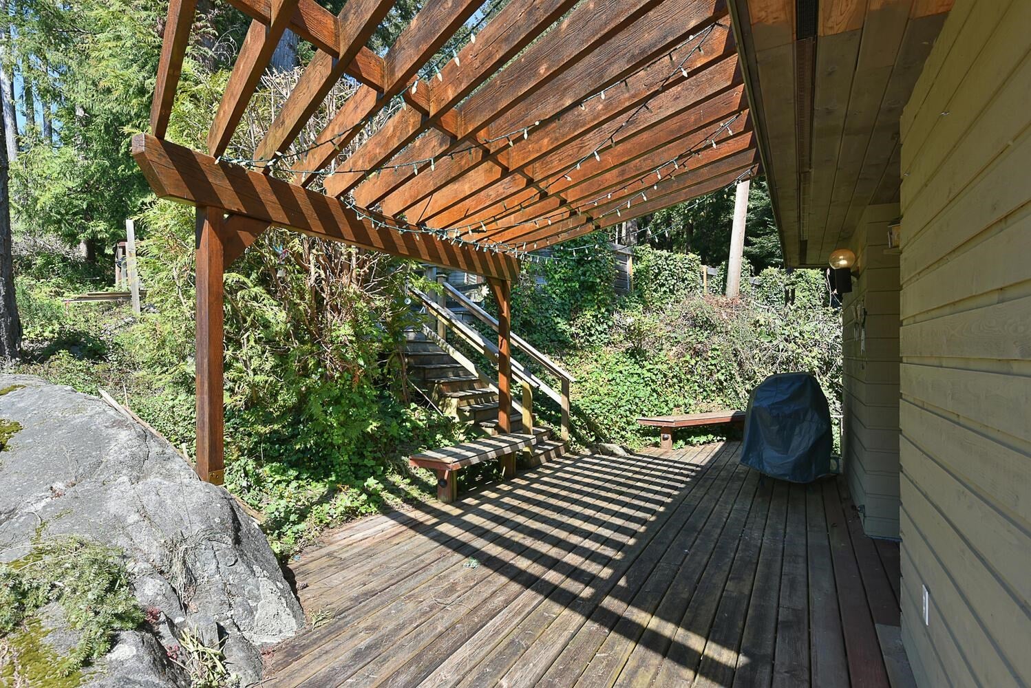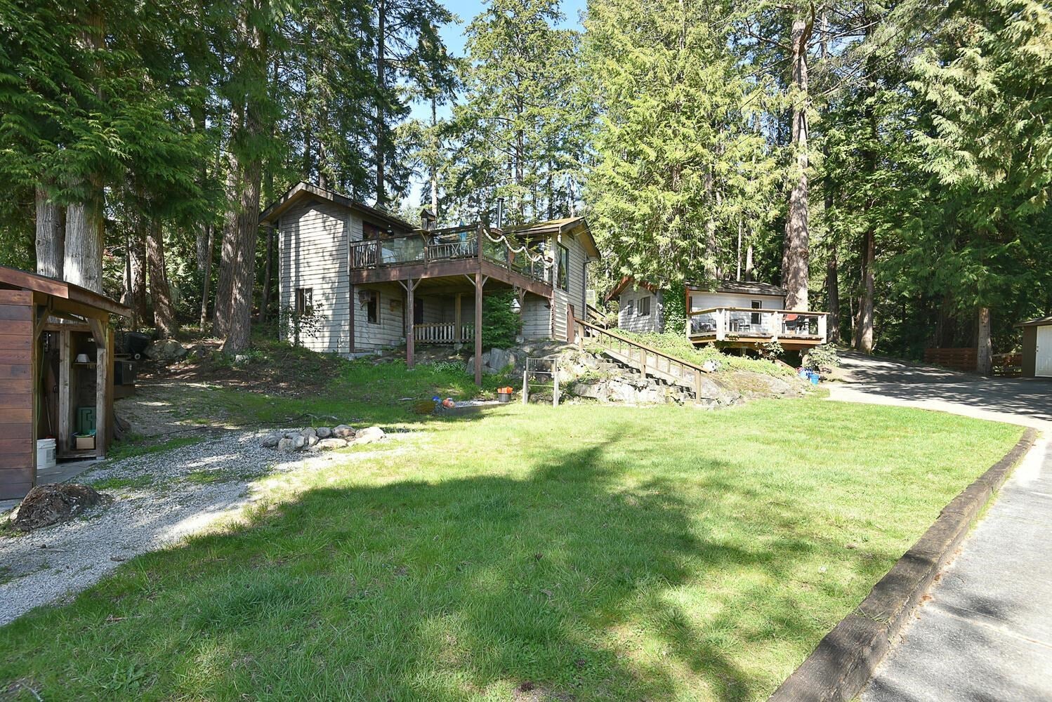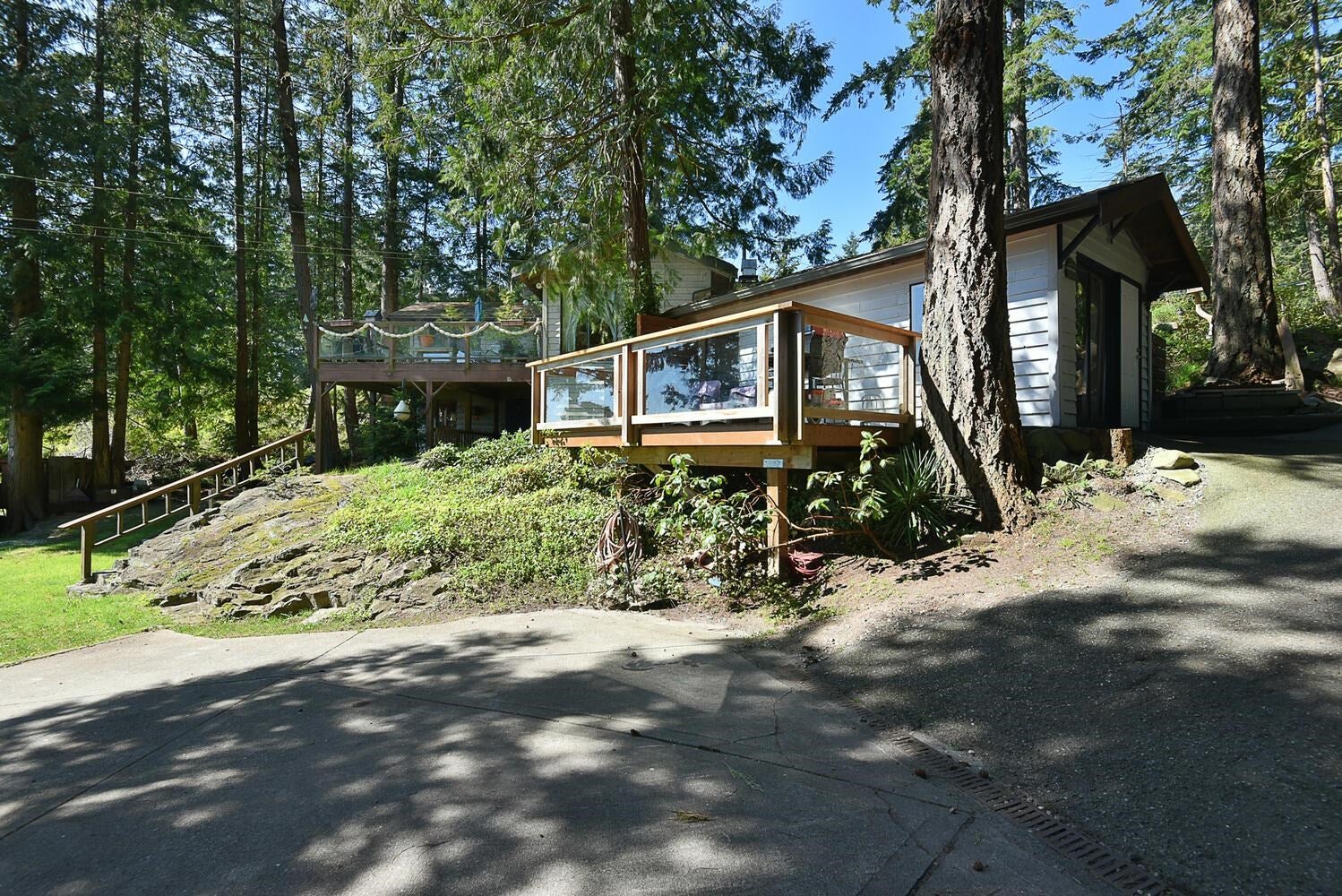 Spectacular ocean views & accessible beachfront via stairs from this unique 1.24 acre waterfront property, located in Sechelt yet on the border of Halfmoon Bay. There is plenty of room for the entire family to spread out, featuring a 1,995 sq.ft. main home, separate 2 bdrm. rental cottage & a separate studio! The 3 level, 2 bedroom main home is bright with tons of windows/ skylights, a wood burning FP & a spacious patio w/ newer glass railings, perfect to sit and soak in the views. Generous sized flex space where you can fit lots of bunk beds, the current owners have fit 10 family members! Located close to Sargeant Bay Provincial Park & just 10 mins. to downtown Sechelt. Come and discover this park-like setting, with mature trees & great privacy. Your waterfront retreat, ready for Summer!
