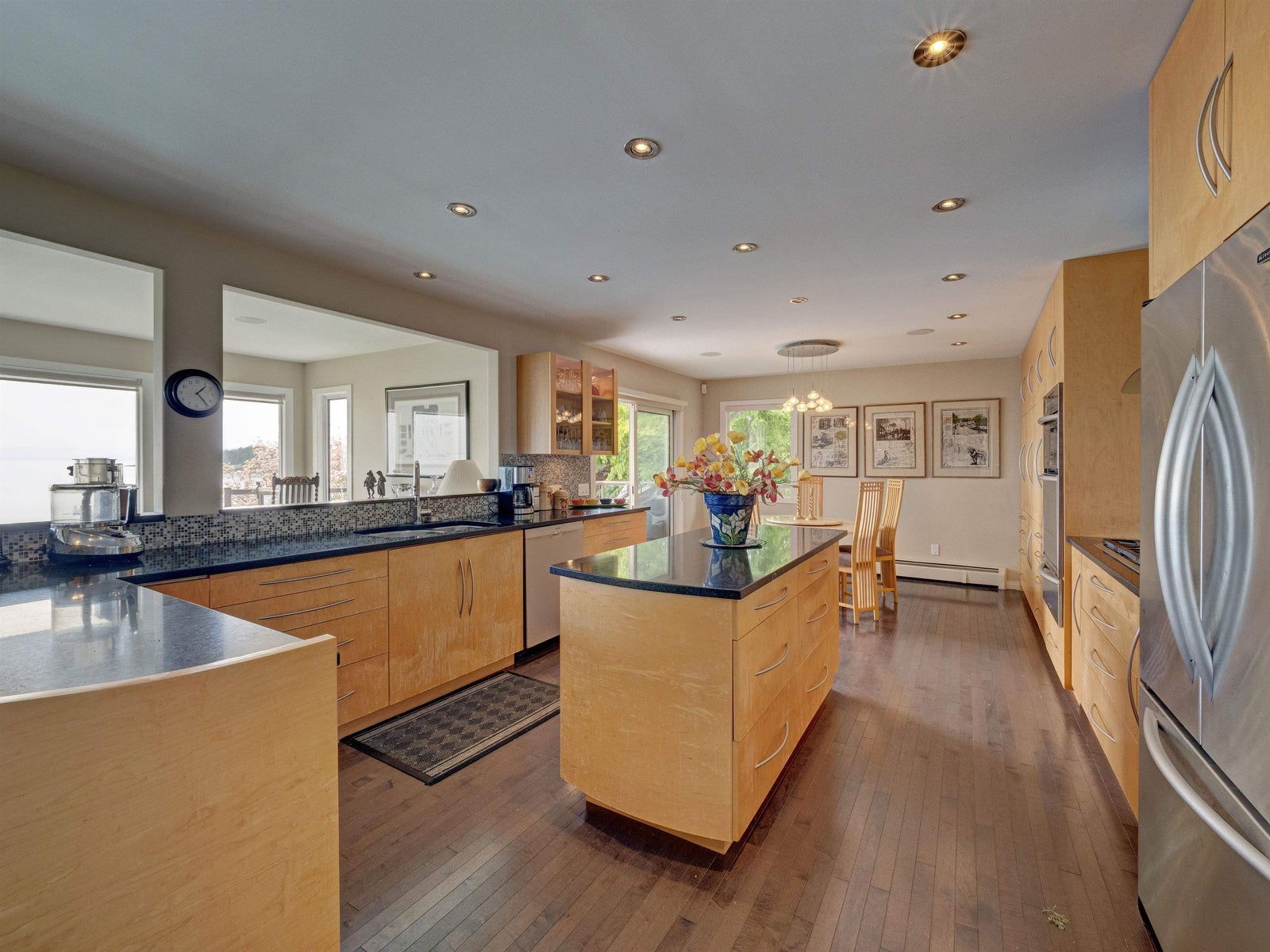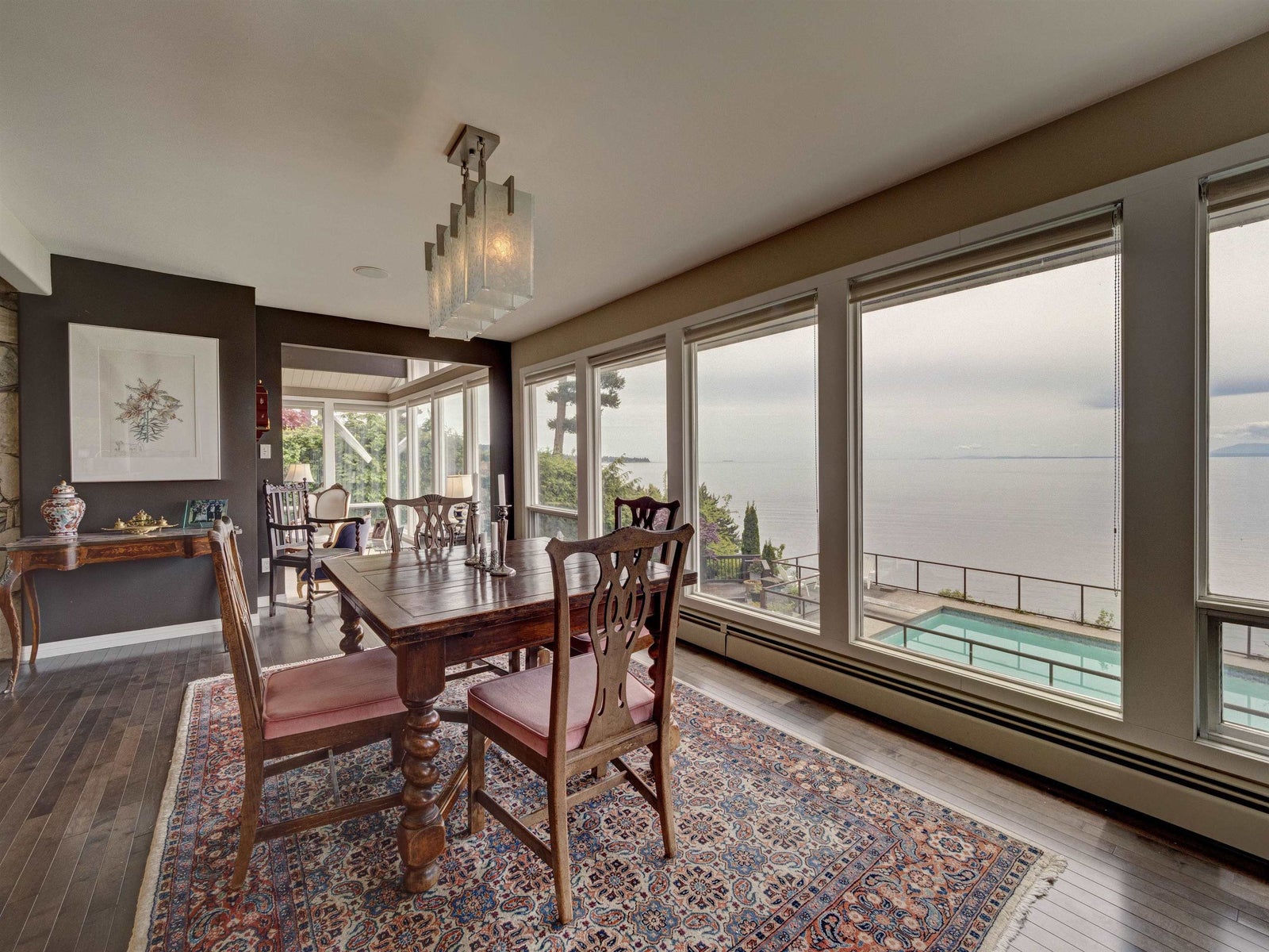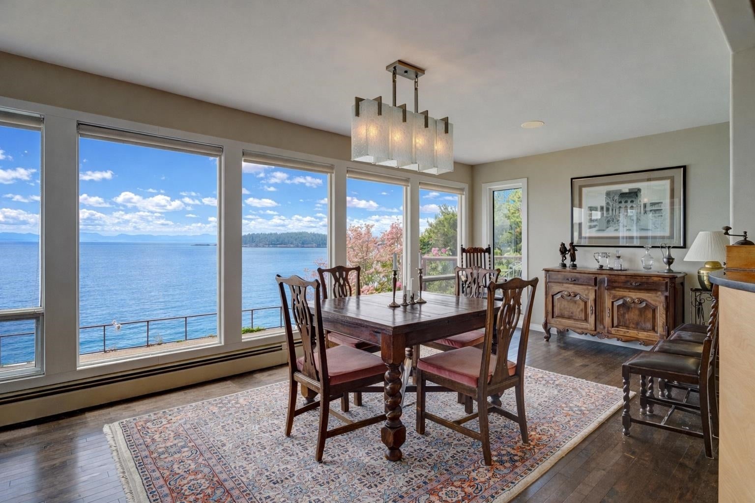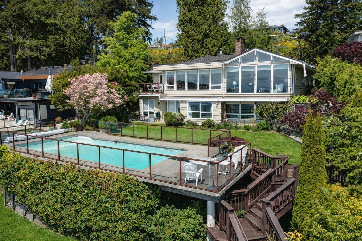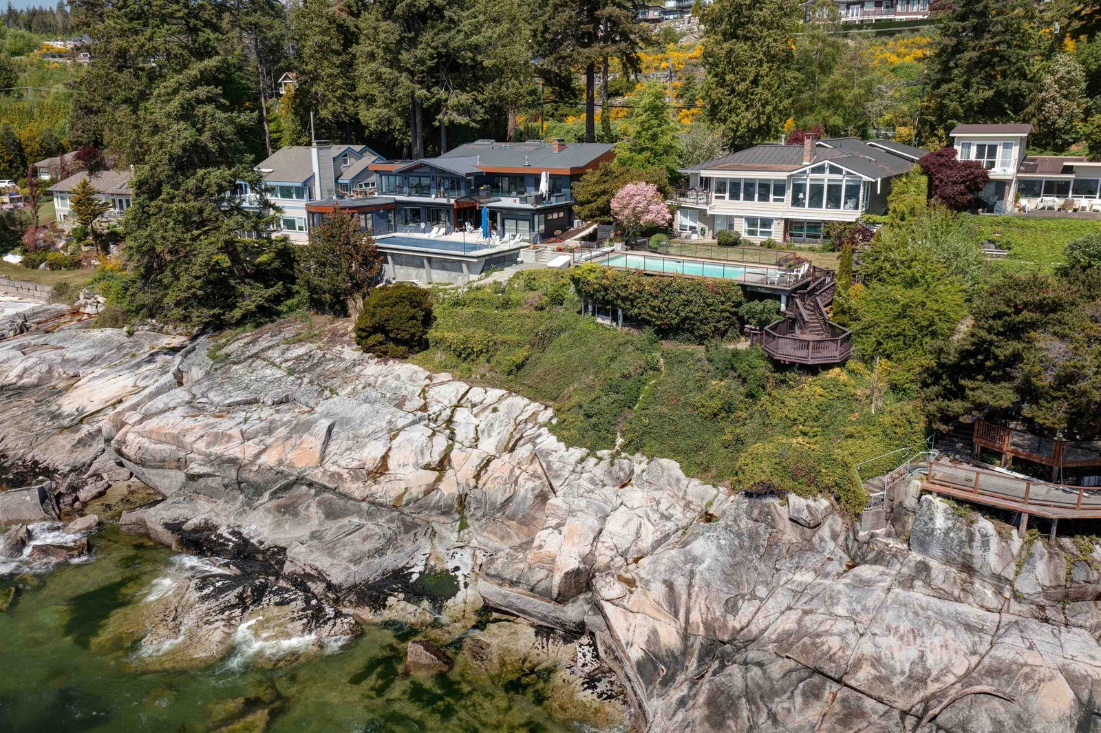 Wonderful location for this 4200 sq ft Walkout Waterfront Bungalow with incredible South & West Ocean and Island views. Tastefully renovated this large scale executive family home enjoys a number of patios/decks, concrete seaside pool, smooth rock outcroppings w/ easy access to the water. Spacious main level offers a nicely flowing floorplan ideal for entertaining. Renovated kitchen, dining room, living room w/ vaulted ceilings & floor to ceiling fireplace. Main floor primary bedroom w/luxurious ensuite, second bedroom and updated bathroom. 1908 sq ft of professional developed space in the lower level which includes a family room, TV room, 2 bedrooms & fully equipped kitchen for visiting guests or pool side entertaining. Beautifully landscaped located 5 minutes to Sechelt. Unique offering.