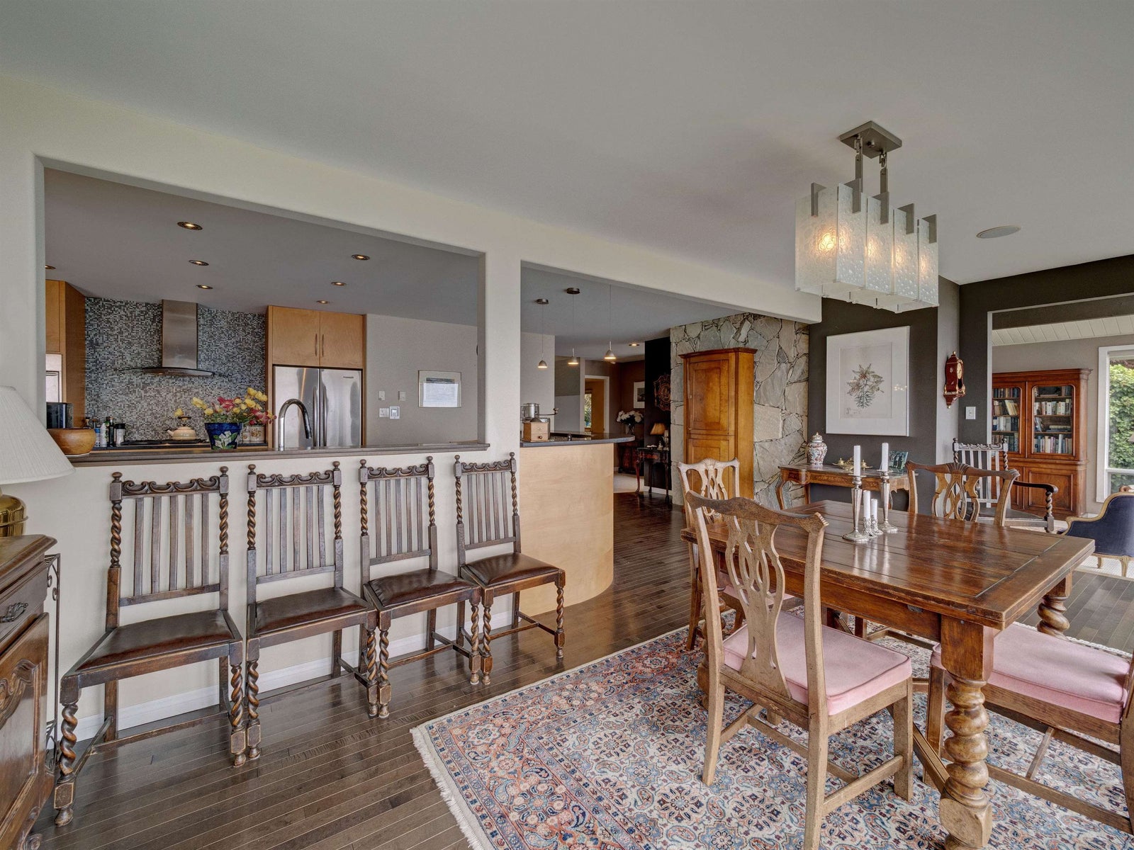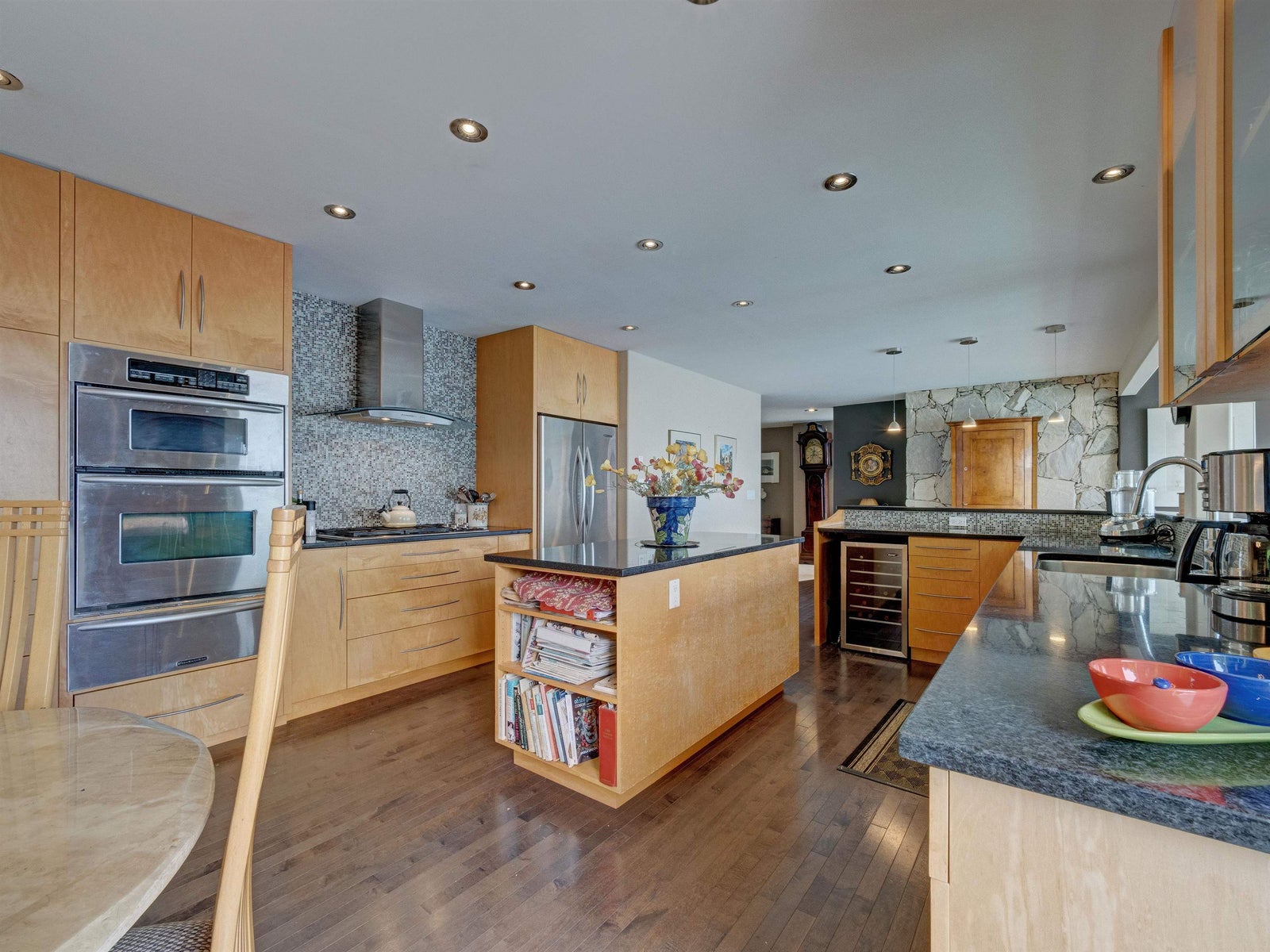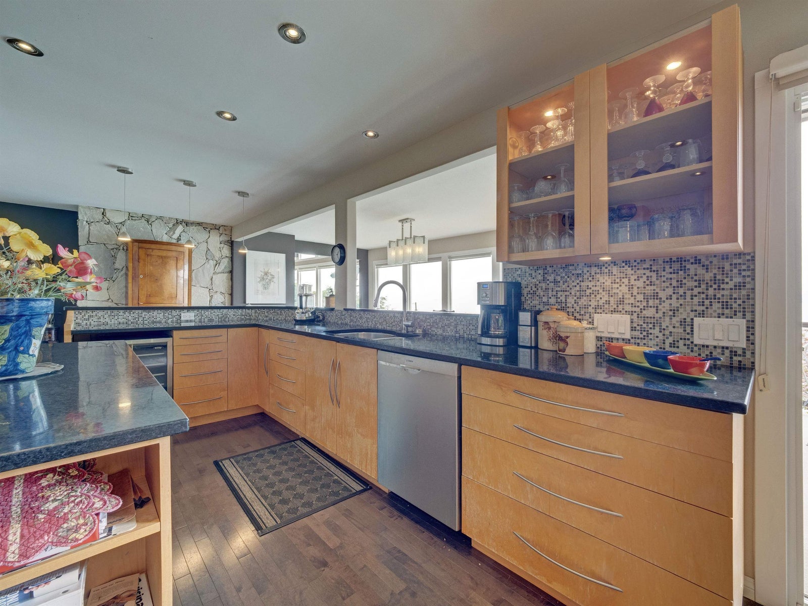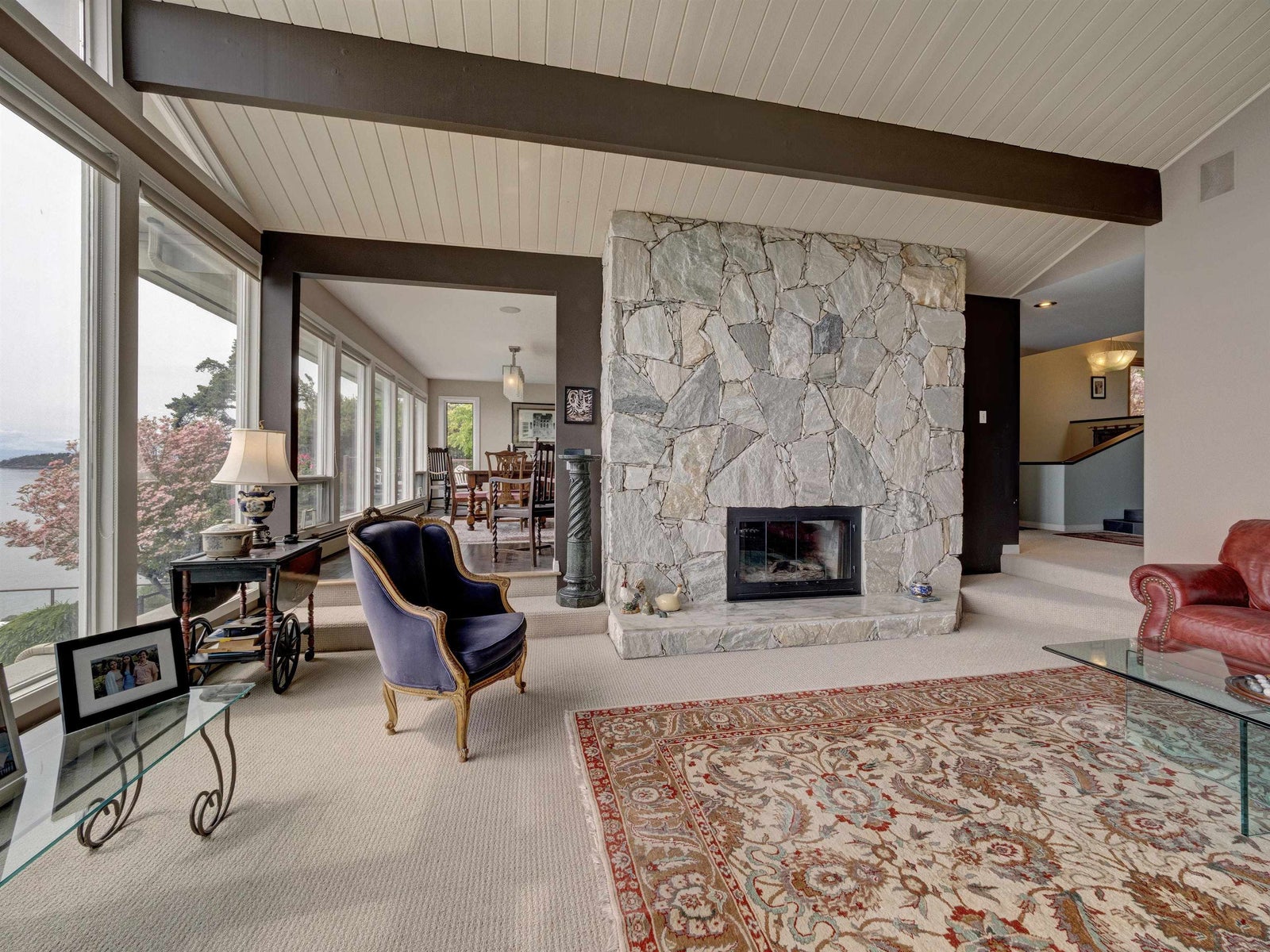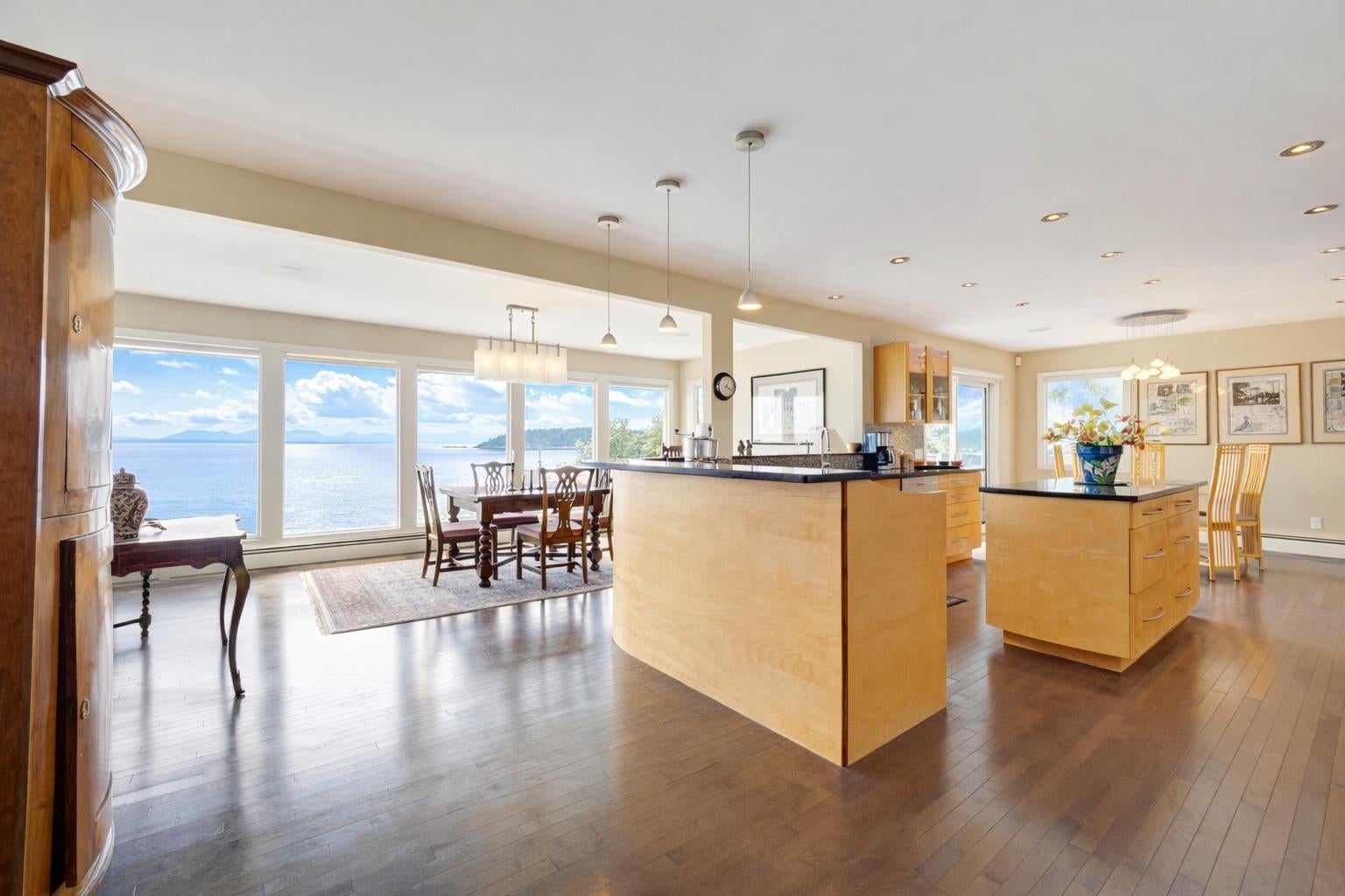 Wonderful location for this 4200 sq ft Walkout Waterfront Bungalow with incredible South & West Ocean and Island views. Tastefully renovated this large scale executive family home enjoys a number of patios/decks, concrete seaside pool, smooth rock outcroppings w/ easy access to the water. Spacious main level offers a nicely flowing floorplan ideal for entertaining. Renovated kitchen, dining room, living room w/ vaulted ceilings & floor to ceiling fireplace. Main floor primary bedroom w/luxurious ensuite, second bedroom and updated bathroom. 1908 sq ft of professional developed space in the lower level which includes a family room, TV room, 2 bedrooms & fully equipped kitchen for visiting guests or pool side entertaining. Beautifully landscaped located 5 minutes to Sechelt. Unique offering.