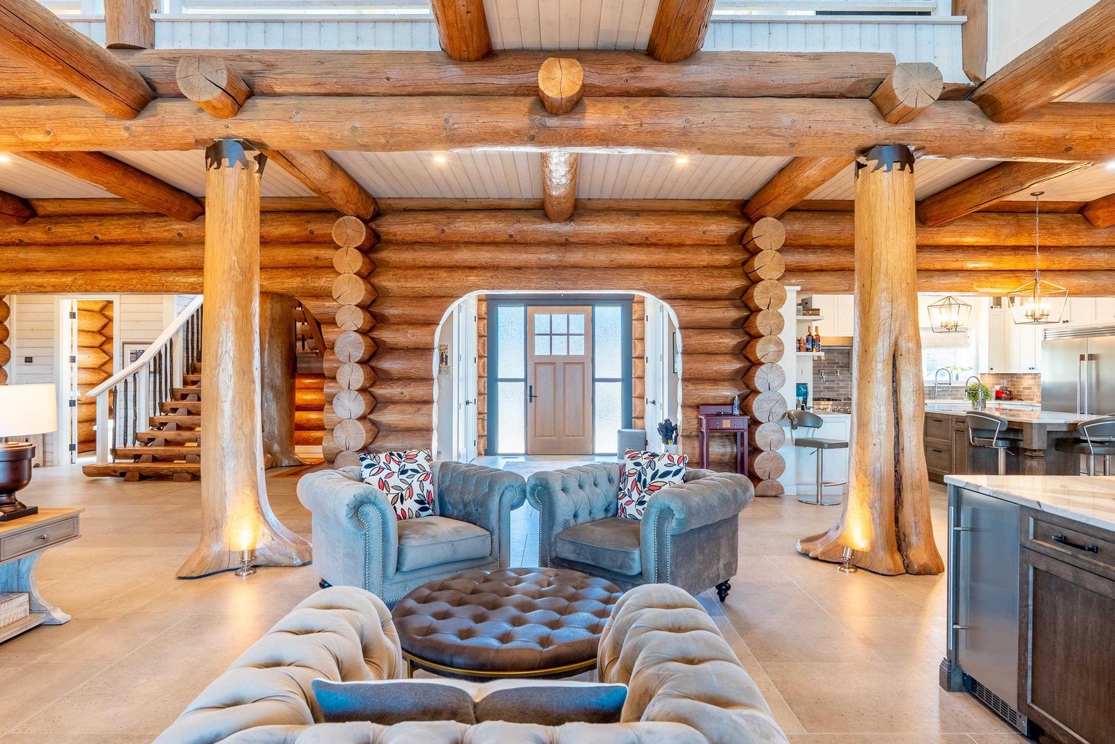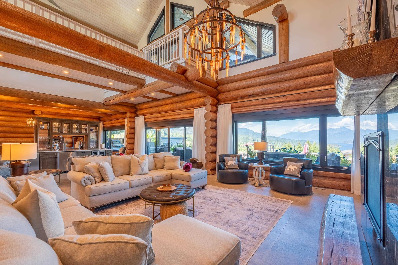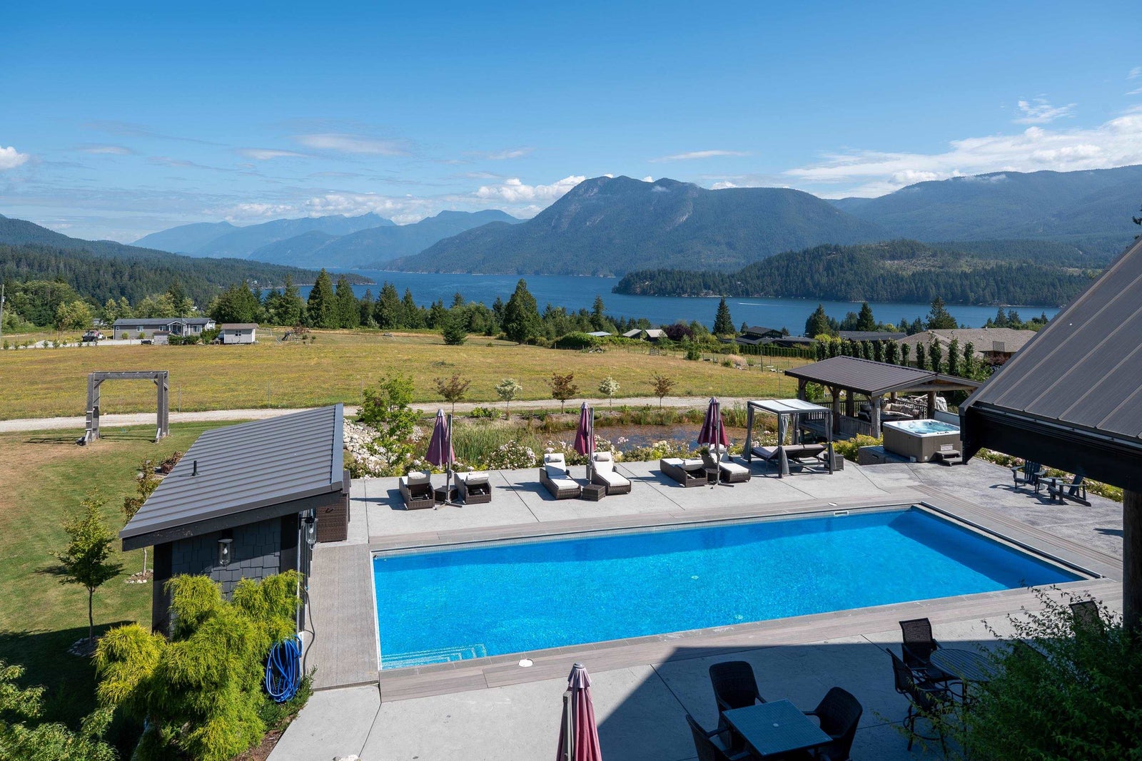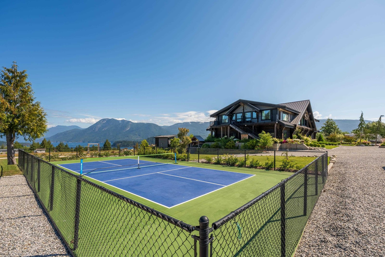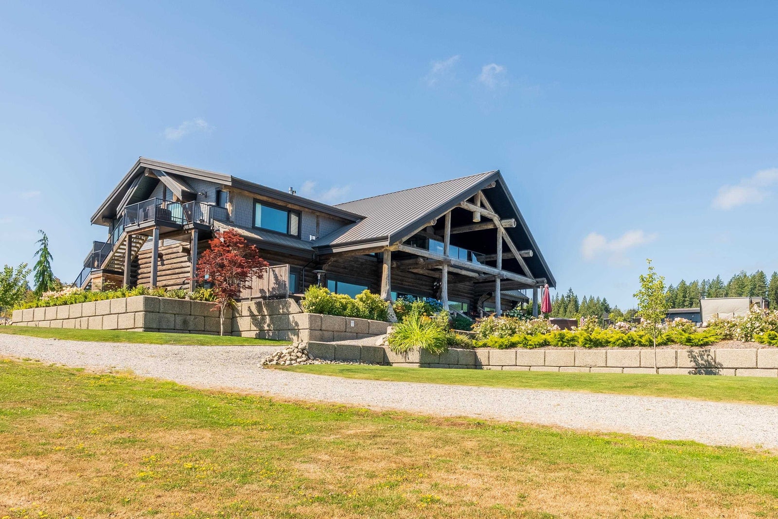 This custom 10,000+ sq ft log home showcases impeccable interior finishings and quality throughout. No expense spared—featuring three large self-contained licensed luxury B&B suites with amenities such as a full gym, private patios, massage rooms, lock-out access from the main living space, plus separate laundry and supply storage. The property offers 2,200 fruit trees nearing maturity, pickleball court, outdoor pool, hot tub, washrooms, a large gazebo for alfresco dining, two shops, and gated driveway. Inside, floor-to-ceiling windows frame sweeping ocean views of Sechelt, anchored by a spectacular fireplace. Despite its size, the home retains a cozy feel. A state-of-the-art kitchen with top-end cabinetry and custom built-ins elevates the living experience. Pls request feature sheet.